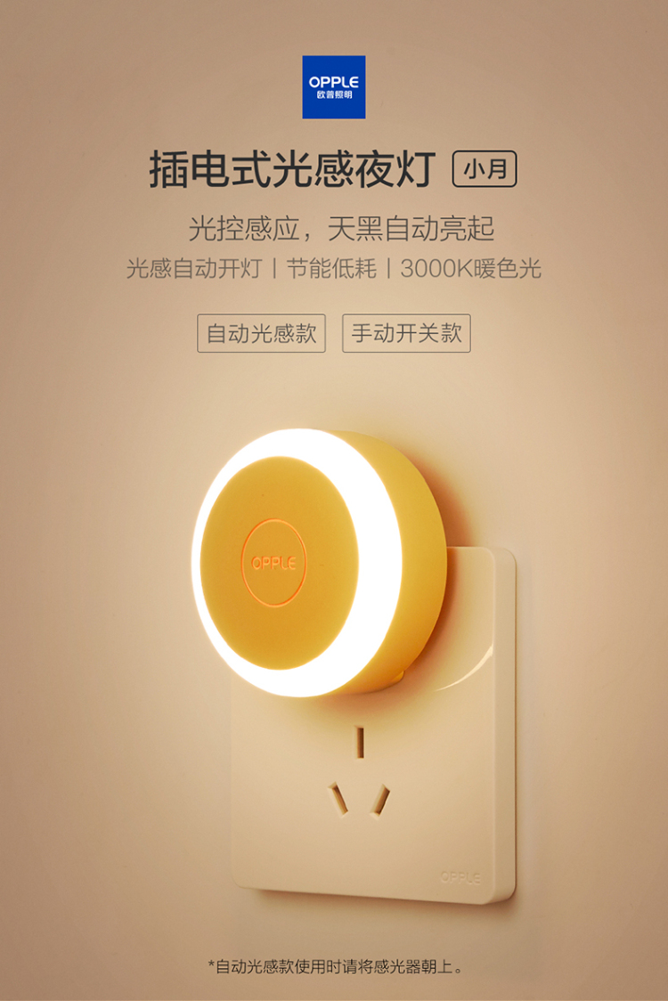 商品名称:欧普照明(OPPLE)LED感应小夜灯床头夜光灯宝宝卧室台灯护眼灯过道走廊年货 【开关款】-鹅黄色款
